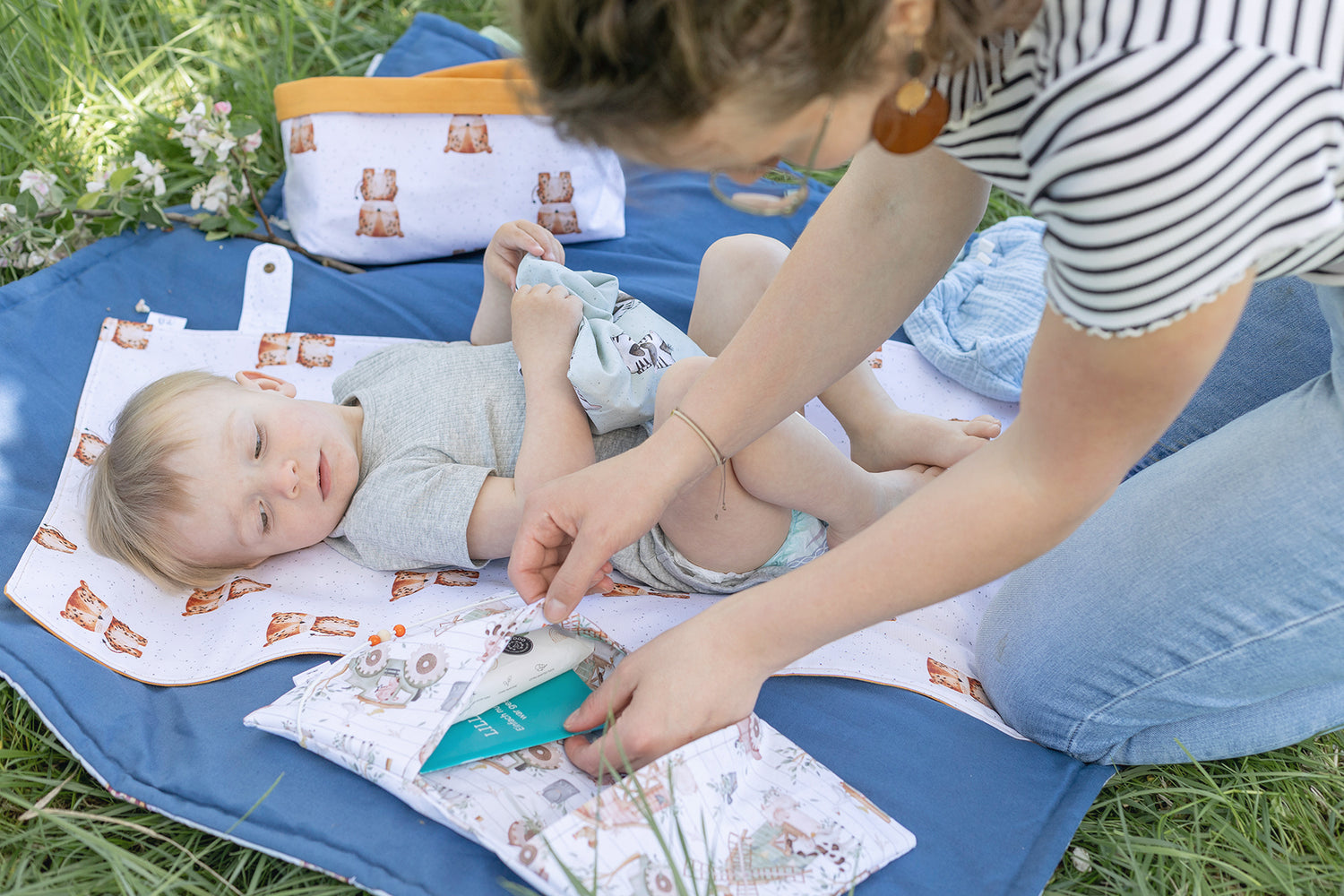 * Organizer für unterwegs: Hält Windeln, Feuchttücher und Wickelunterlage ordentlich und griffbereit.